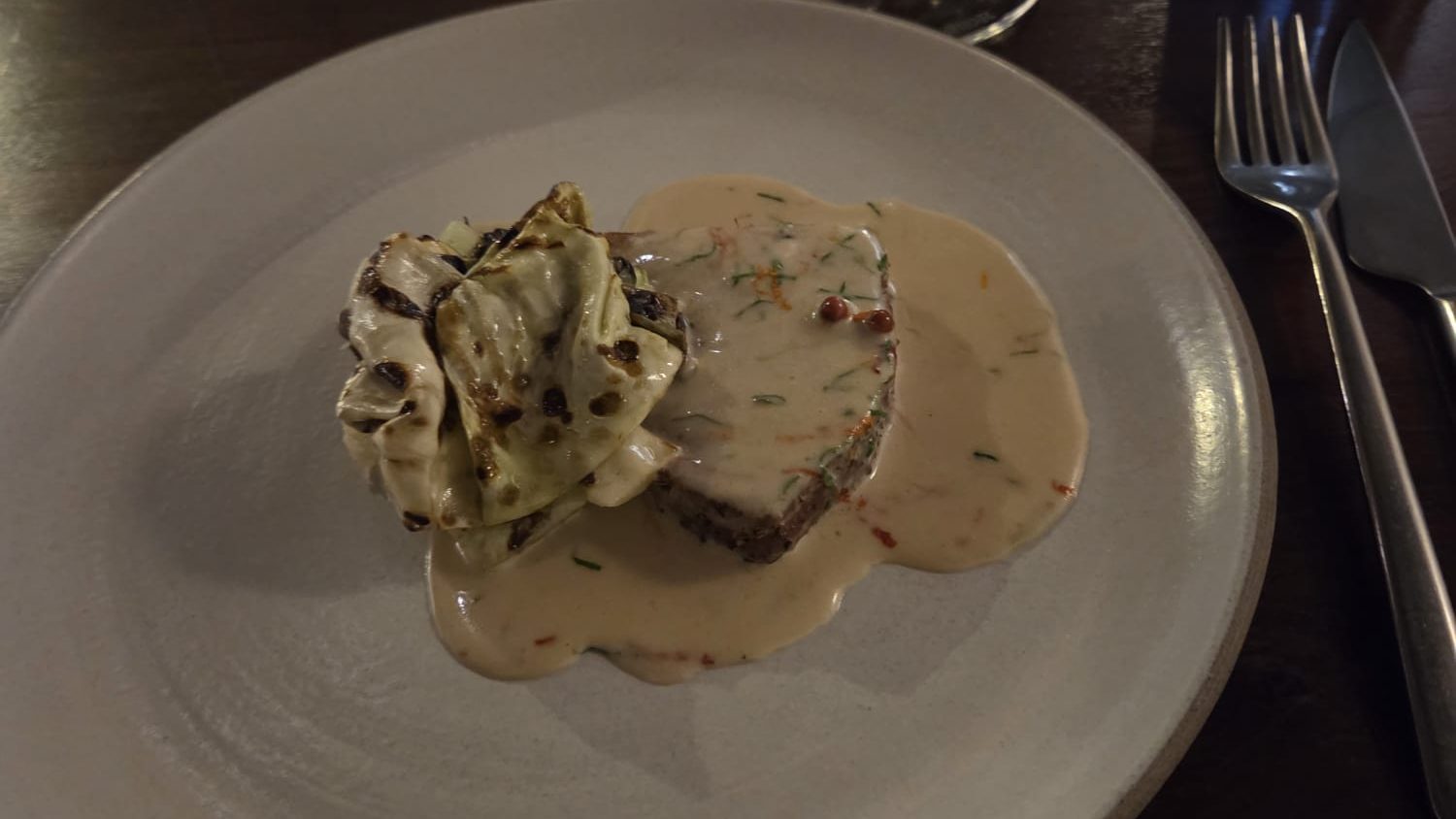 6. Tuna, hispi cabbage & peppercorn sauce